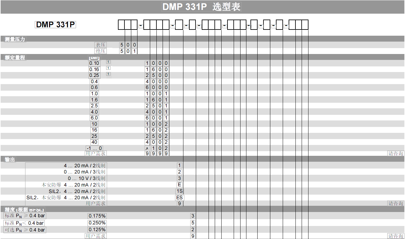 額定量程從 0 ... 100 mbar 至 0 ... 40 bar 輸出信號 2 線制: 4 ... 20 mA / 3 線制: 0 ... 10 V 其他請咨詢