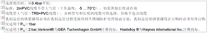 可選型號:本安防爆型;SIL 2 認(rèn)證符合 IEC 61508 / IEC 61511 標(biāo)準(zhǔn);隔膜 Hastelloy® 和 Tantal 特殊材料;冷卻管