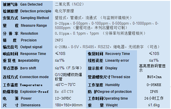 監(jiān)測環(huán)境中或管道中二氧化氮氣體濃度