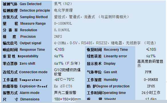 監(jiān)測環(huán)境中或管道中氮氣的濃度并報警