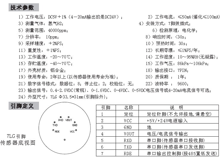智能型氫氣H 2傳感器7 L G / H 2 - 4 0 0 0 0